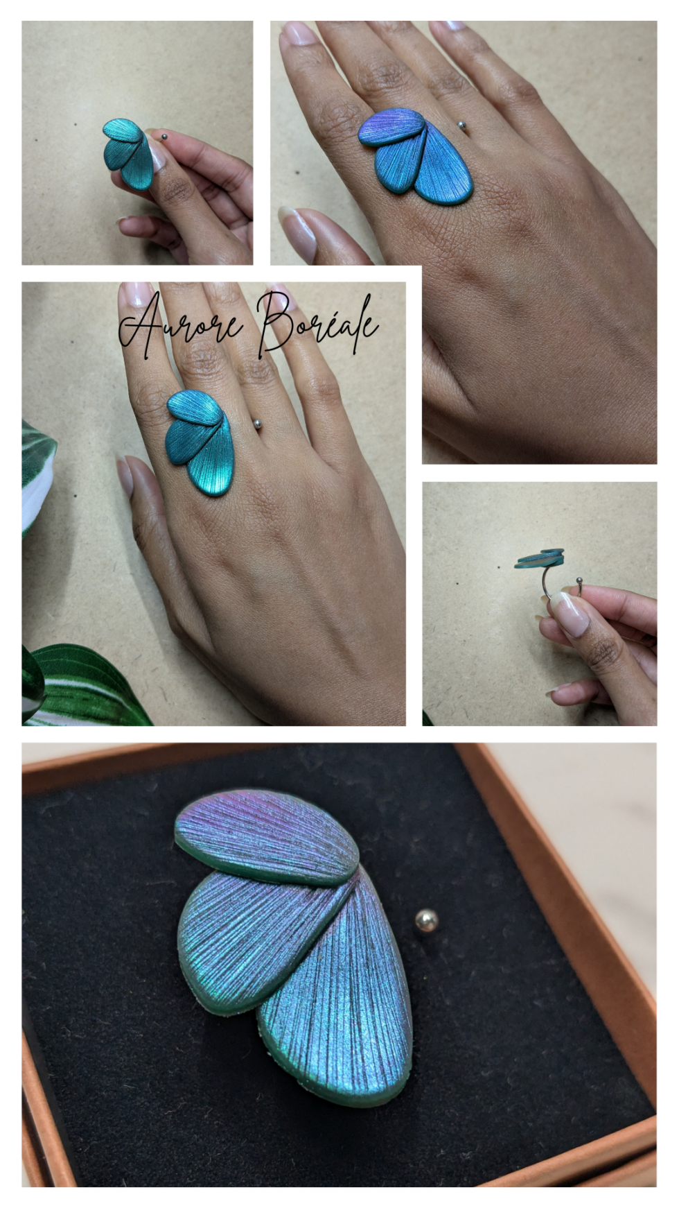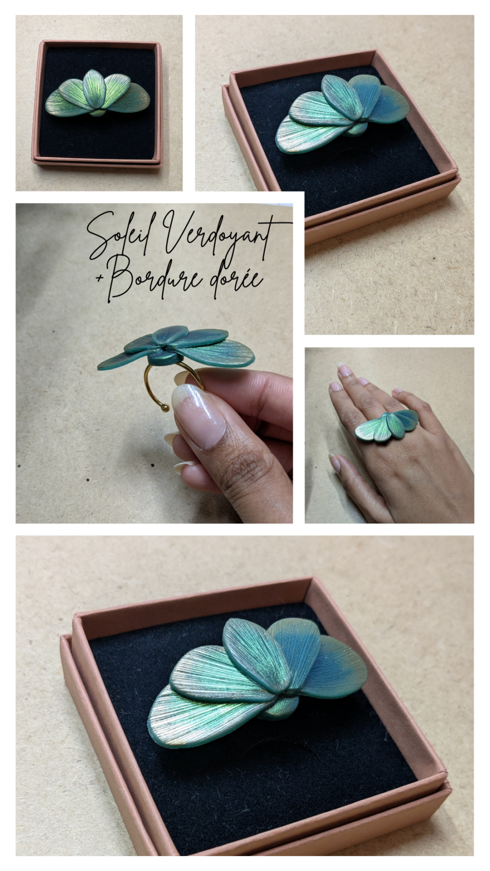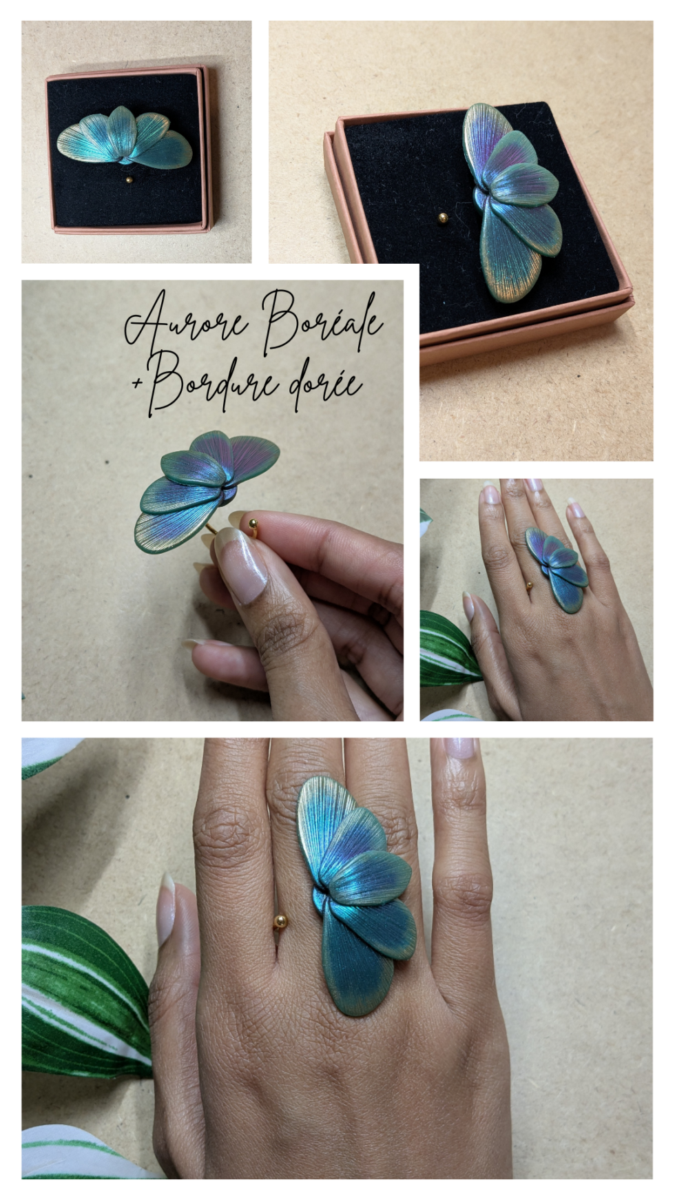 Bague en pâte polymère sur support réglable en acier inoxydable.