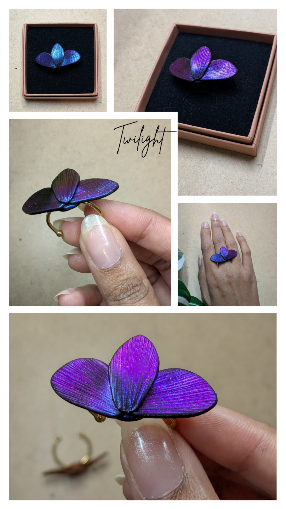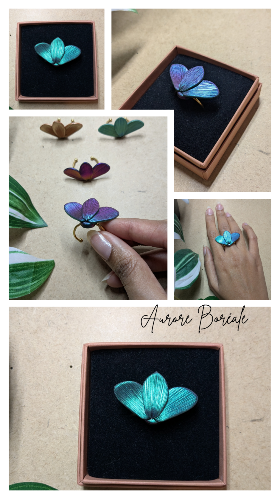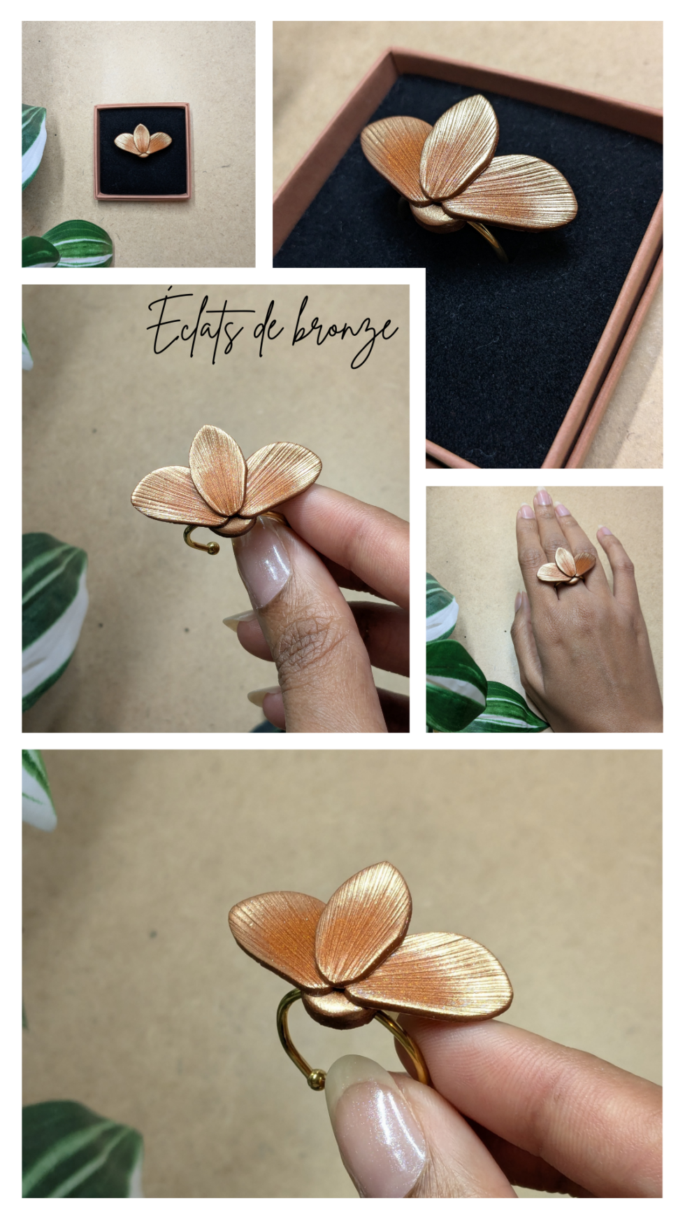Bague en pâte polymère sur support réglable en acier inoxydable.